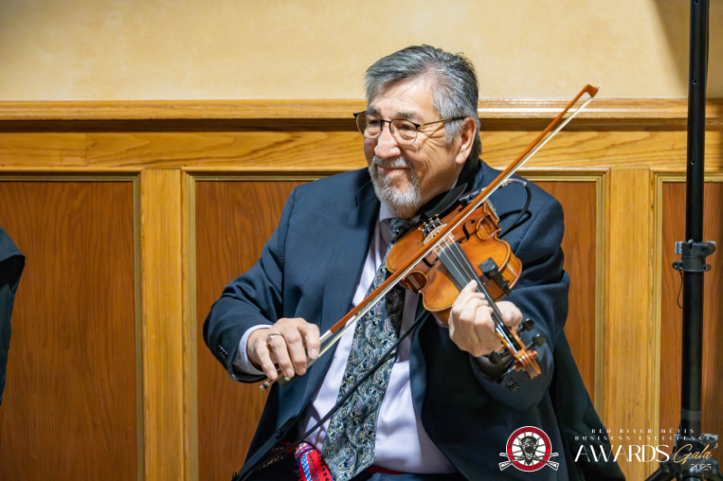 And at the end of the day, he often returns to one of his greatest passions: Music. As an avid fiddler and proud community ambassador of the Red River Métis, he shares his gift in schools, senior homes, and cultural events across our Homeland, keeping alive a musical tradition that carries generations of Red River Métis stories and spirit.