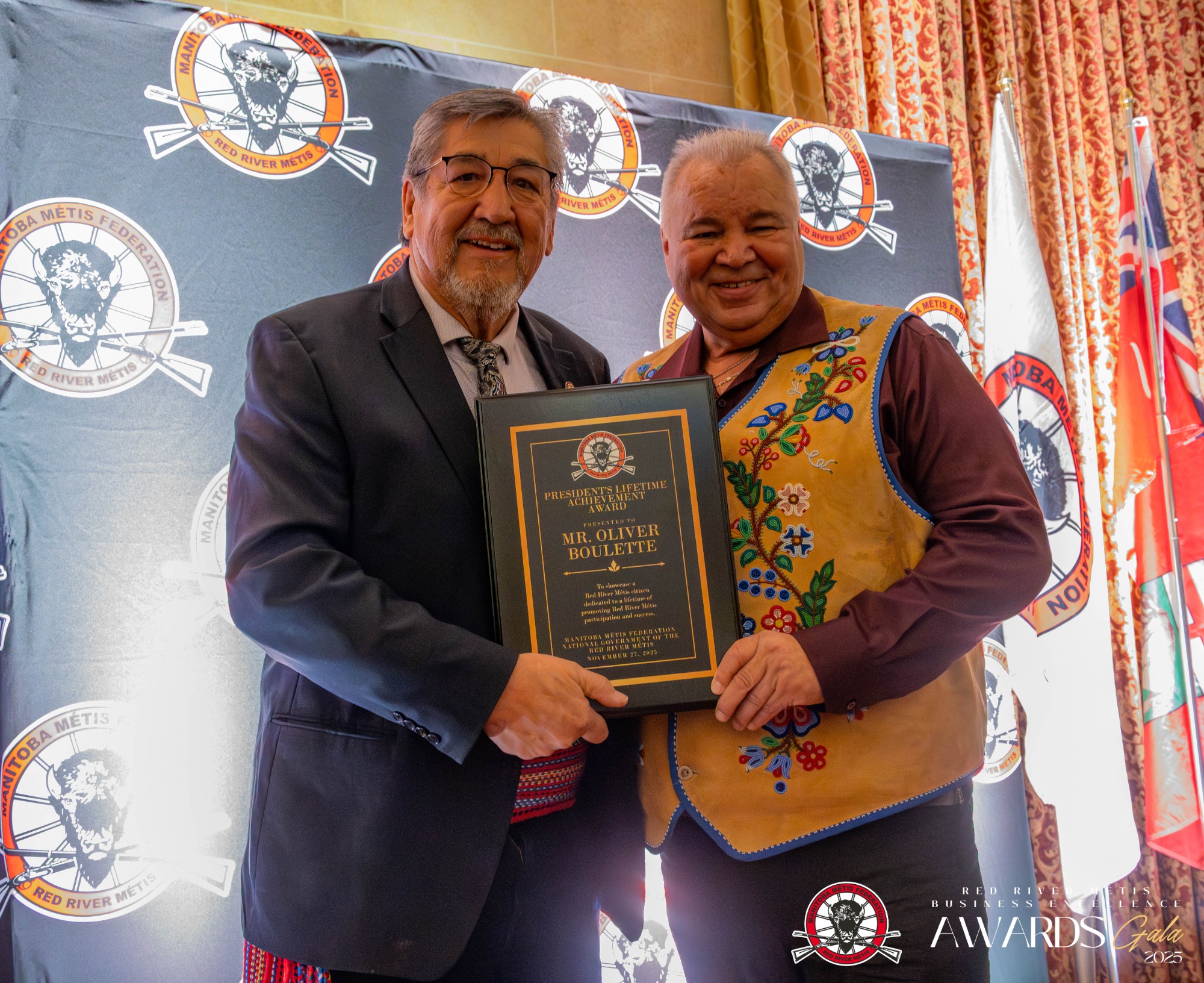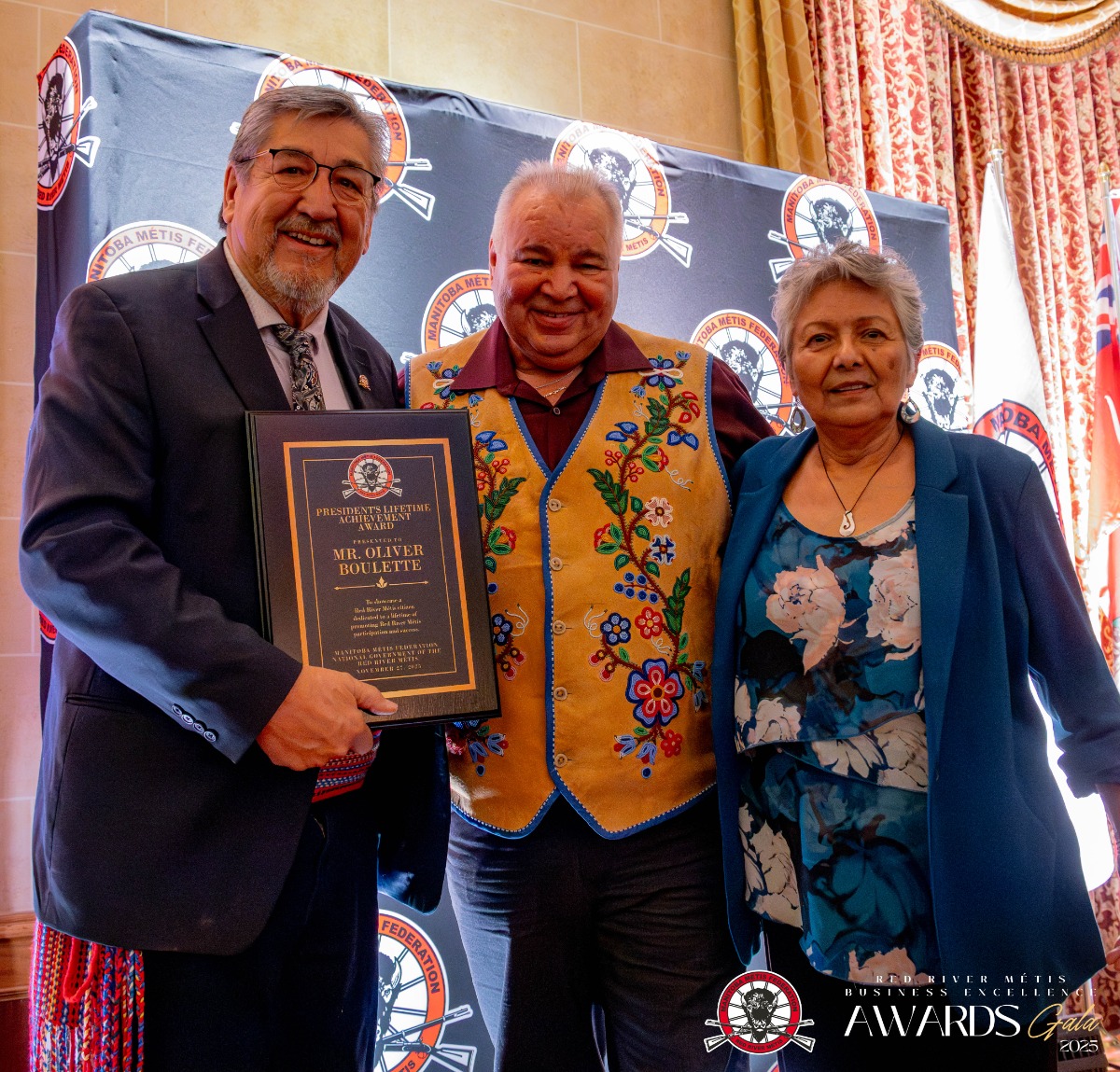 The Manitoba Métis Federation President's Lifetime Achievement Award is awarded to a Red River Métis citizen with exemplary contributions as a businessperson and/or to someone who enhances business opportunities and is dedicated to a lifetime of promoting Red River Métis community success.